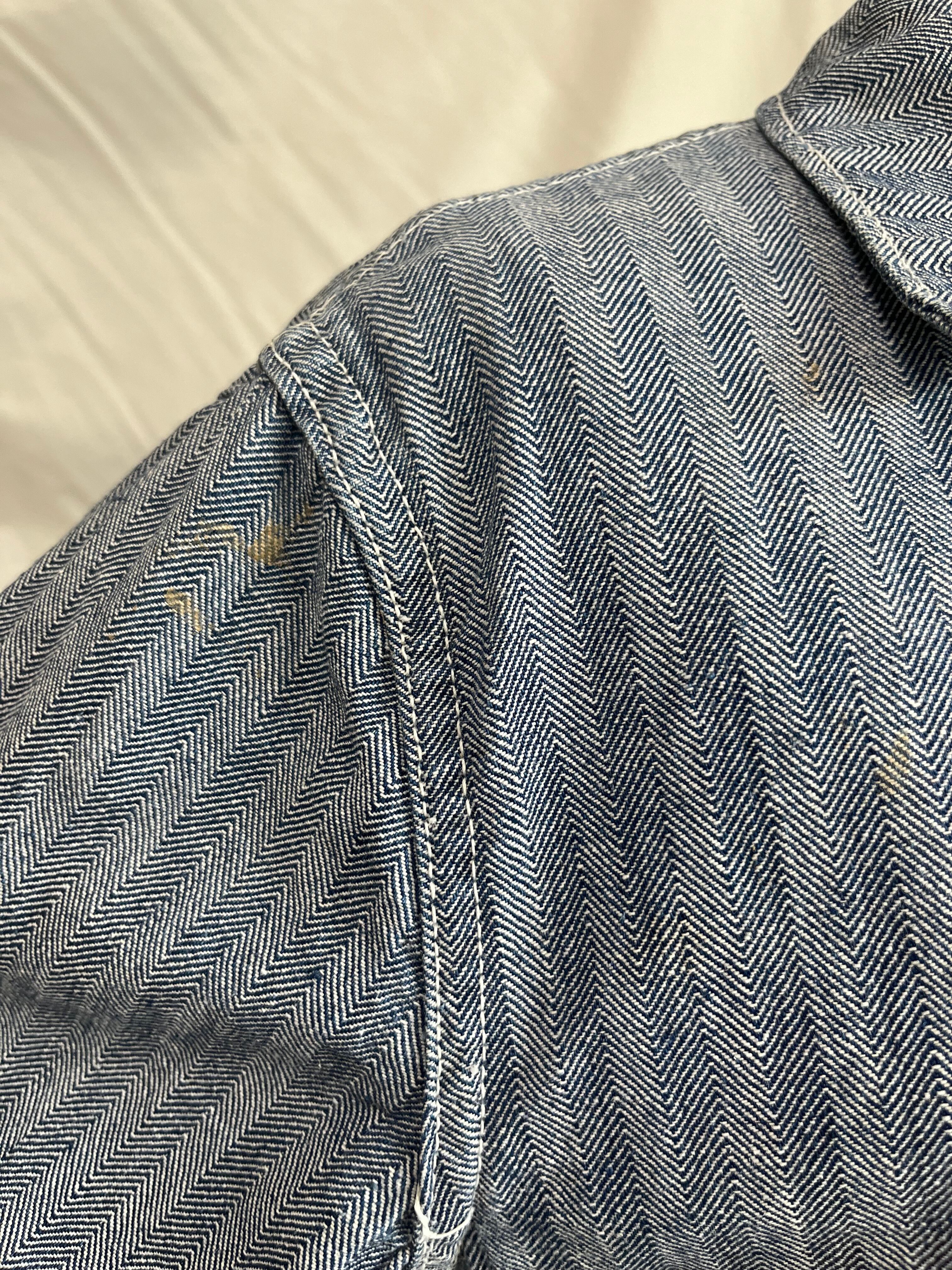 デニムに比べ、圧倒的に遭遇率の低いヘリンボーンツイル生地にカバーオールを短丈にしたようなこのデザイン。コンディションの良さも含めて、かなり魅力的な逸品かと存じます。